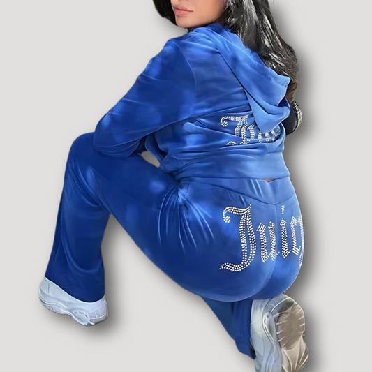 Juicy Graffiti Letters Rhinestone Zip-Up Hoodie Tracksuit Set Womens