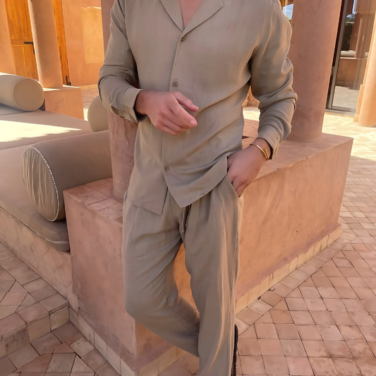 Button Up Long Sleeve Summer Outfits Linen Pants Set