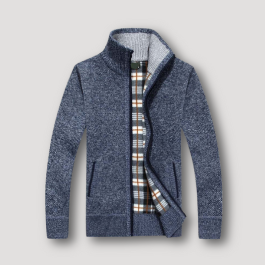 Cozy Rib Knit Full Zip Checkered Flannel Lined Wool Mens Sweater
