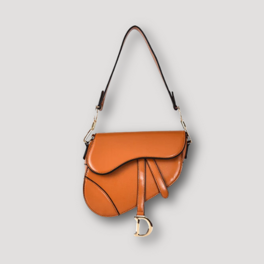 Designer Golden 'D' Pendant Wide Strap Leather Saddle Bags