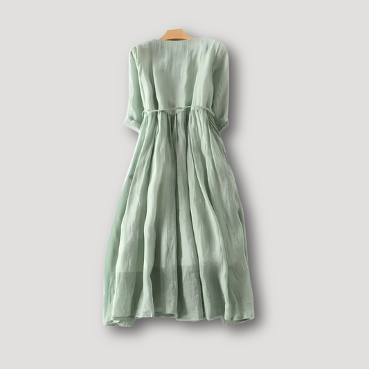 Cotton Linen Double Layer Midi Women's Dress