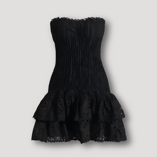 Fitted Smocked Eyelet Tiered Ruffle Strapless Summer Mini Dress